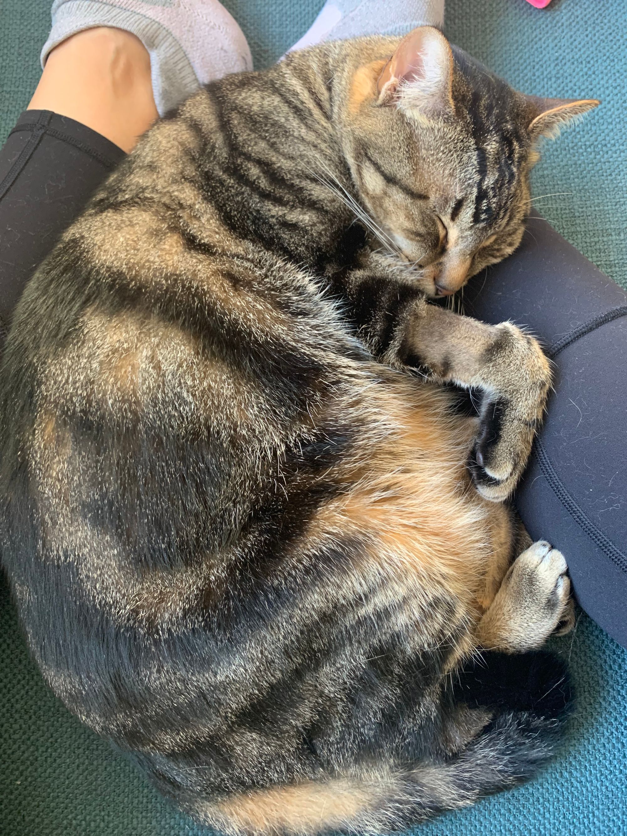 Immediately after my morning walk when I'm feeling the right amount of light-headed because I've just sprint-walked 60 minutes with no food in my system, I plop down on my living room couch by the window and meditate for at least 10 minutes. I currently use the Calm app which always has a daily 10 minute meditation. And as you can see from the picture below, I leave room for Gary Kitty who also likes to meditate with me.